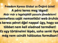 Szeretettel köszöntelek! Tömör összefoglalás, hogy jelenleg mit kínál a cég!Részesedhetsz a Freedom Xpress Global cég nemzetközi forgalmából, már a legelejétől kezdve, havonta, folyamatosan, készpénzben, életed végéig, és még örökölhető is.Stratégiai partnereink:www.aliexpress.com az Alibaba nemzetközi webáruháza, több, mint 200.000 cég, több mint százmillió termékewww.booking.com 228 országban közel 29 millió szálláslehetőséggel a legjobb árakonwww.pelikan.hu több mint 800… Tovább »